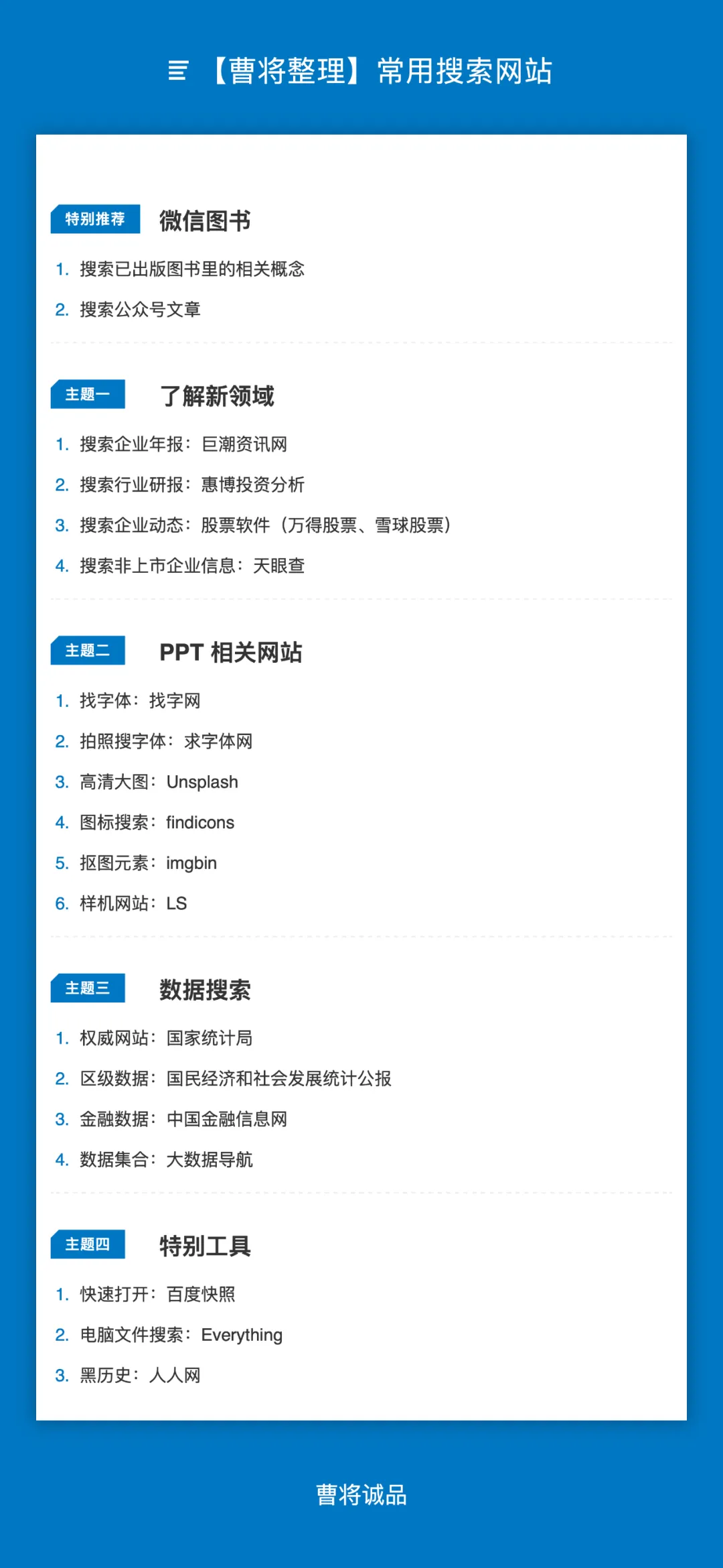 在之前的文章里,曹将也分享了一系列有用的搜索渠道,在这里做一下归总。