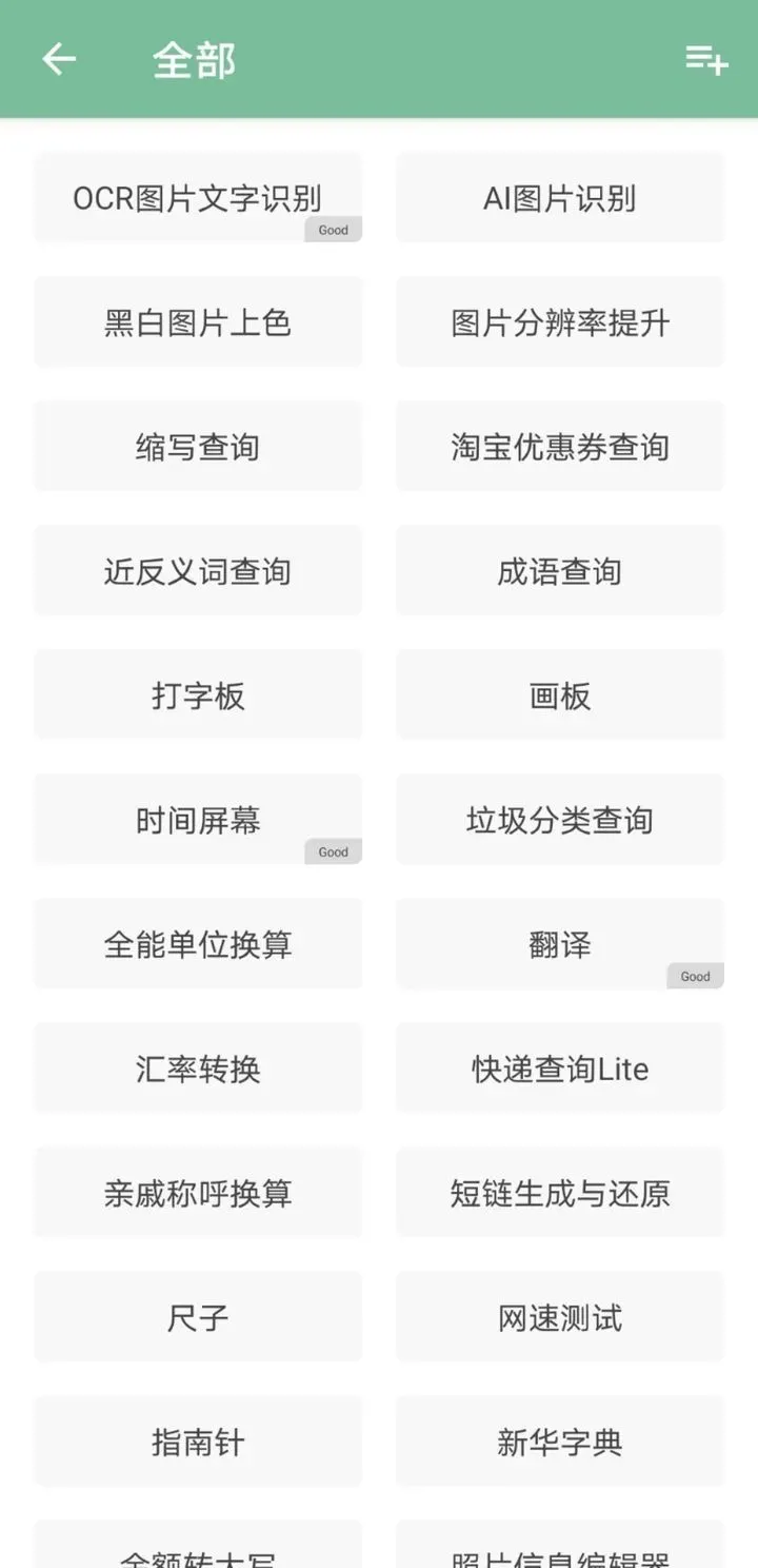是我特别喜欢的一个APP,设计简约,功能强大,包含图片识别、表情包制作、垃圾分类查询、网速测试等工具,基本的日常生活需求都可以满足。