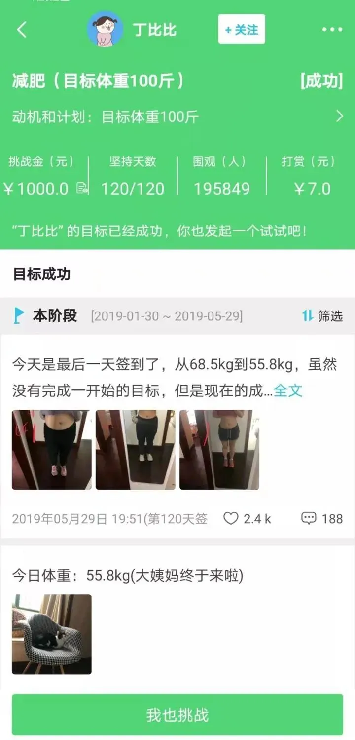 不过,如果你没有完成你的目标,这些围观的朋友们就会瓜分掉你的押金。(同理你也可以分别人的钱)