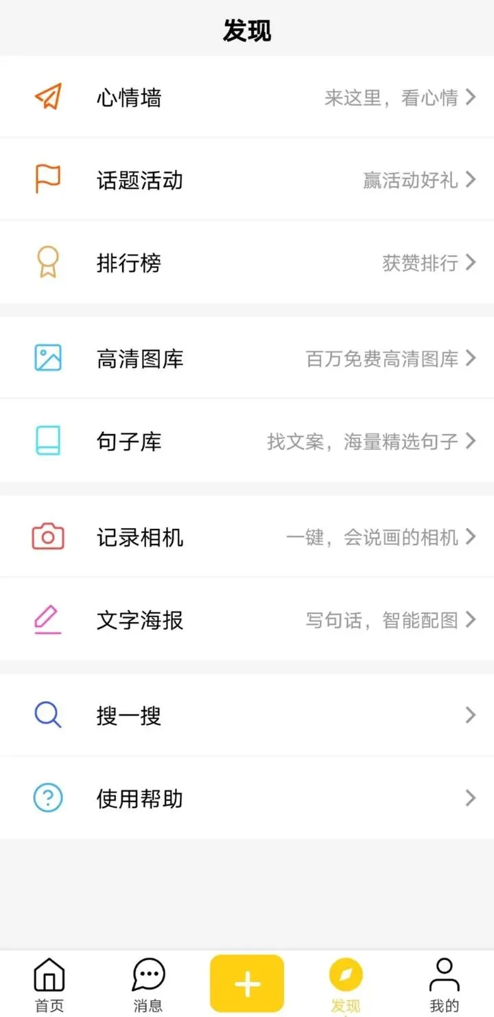 要说的功能都在图上了!它号称用图片传播一切,是手机端的PS,可以用它来制作摄影、日签、海报、手账、诗词,甚至文章和新闻!