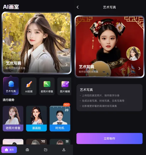 该软件提供了多个特效工具,如AI写真、图片流动、AI绘画、童年相机等多个趣味性十足的工具,让我们能够根据自己的喜好给图片添加各种有趣的特效。