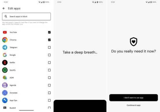 Ascent通过检测我们打开应用的动作,会进行及时的提醒,你可以根据自己的习惯,设置需要介入提醒的应用,比如把那些过多耗费时间的应用加入到阻止列表里。