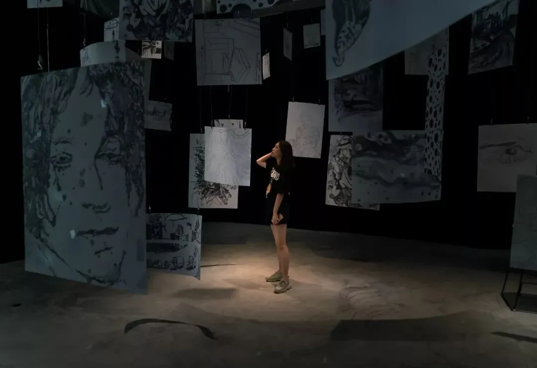 黑色房间连着一个展厅,里面挂着很多艺术画作,人物的、动物的、抽象的、具象的都有,既能陶冶情操,也能成为很好的背景板。
