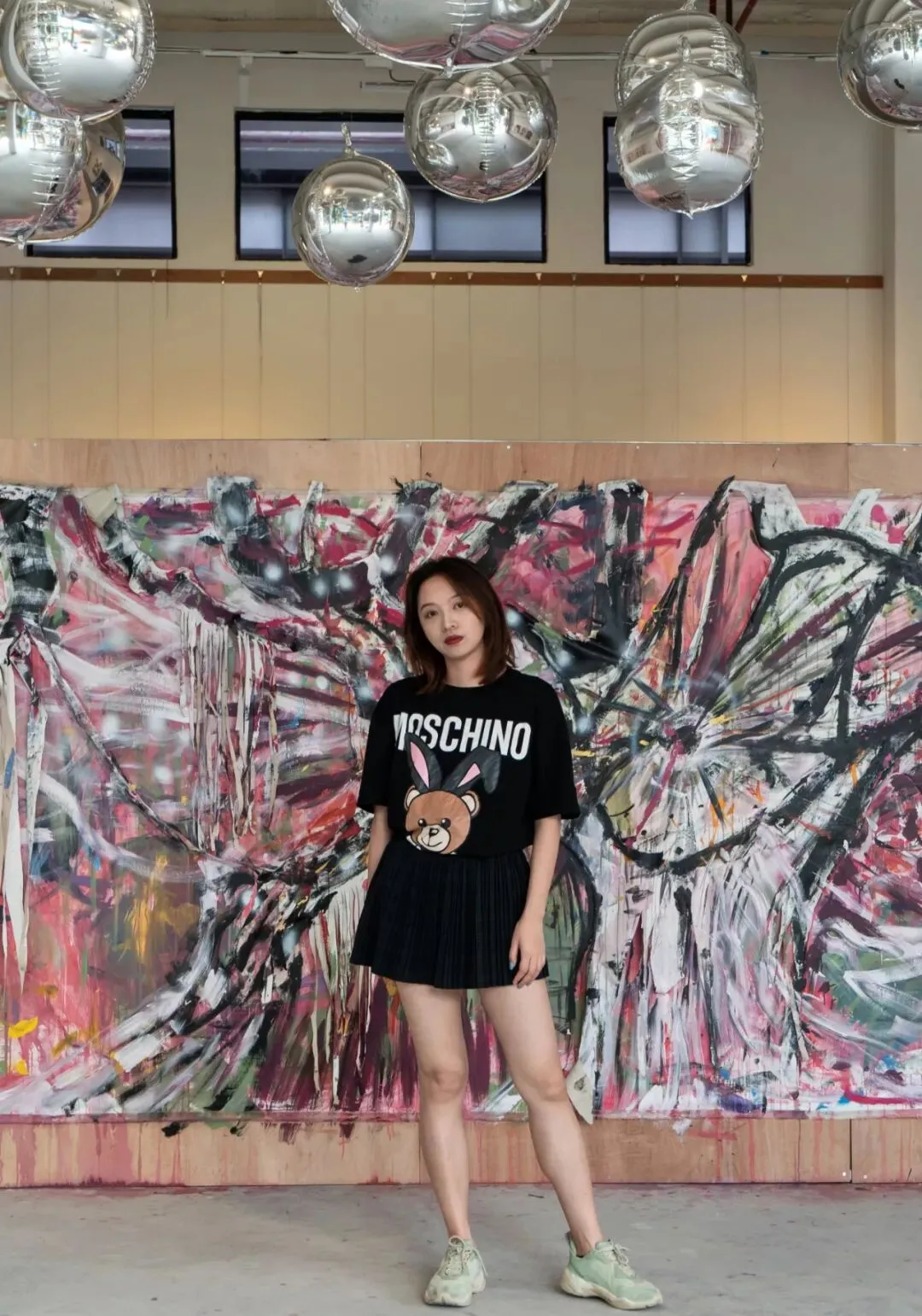 大尺幅的幕布与工业颜料混合,冲击着人们的视线。因此在这里,你可以尝试更多不同风格的姿势却不用担心违和,因为环境真的有极高的包容度。