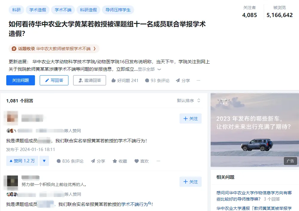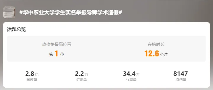 此事经由媒体报道立即引爆的互联网,在微博热搜榜上一度冲上热一。且有多家关注社会新闻的自媒体亦报道了此事。2024年1月16日夜间,华中农业大学动物科学技术学院动物医学院做出回应,在学员官网发布说明:
