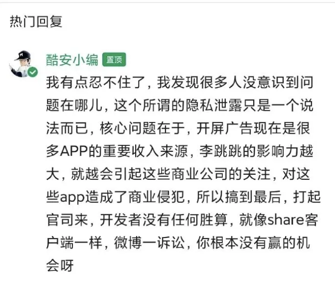 4、跳过广告说实话确实侵犯到广告收益了,但为什么不敢光明正大的说呢?直接以这个理由要求下架岂不是更好?这恰恰说明了,这些开屏广告里面有多少见不得光的东西。