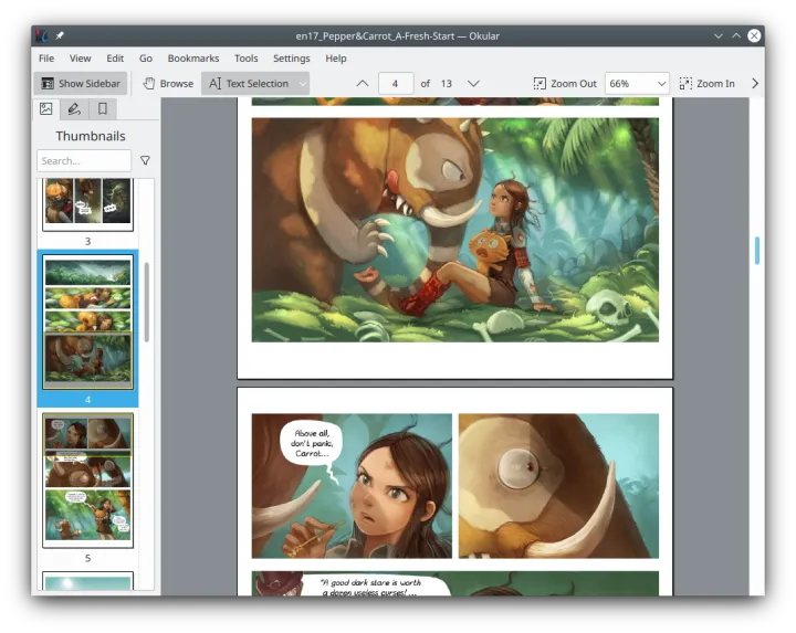Okular 是一款功能丰富、轻巧快速的跨平台文档阅读器。您可以使用它来阅读 PDF 文档、漫画电子书、Epub 电子书,浏览图像,显示标记语言文档等。