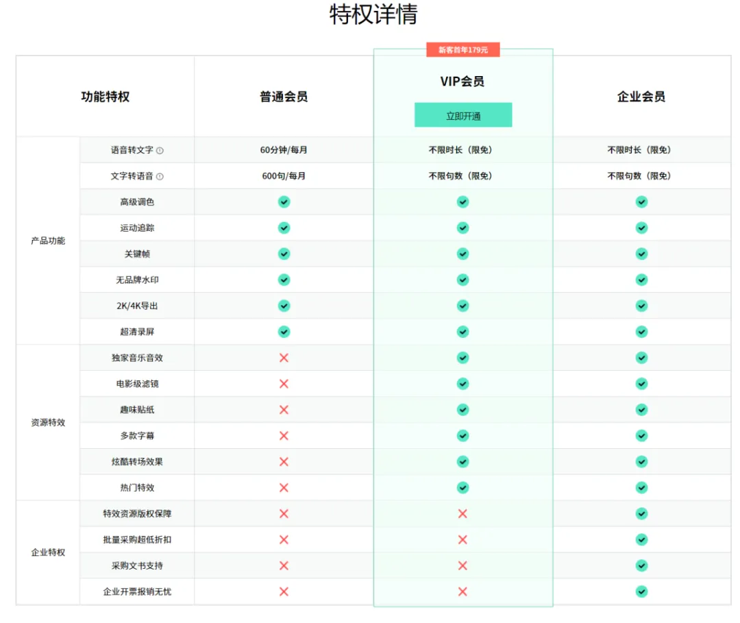 作为一款商业化的软件产品,万兴喵影当然不可能完全免费,但也没有采用国外那套直接收费的模式,而是套用了国内软件普遍的盈利模式——会员模式。