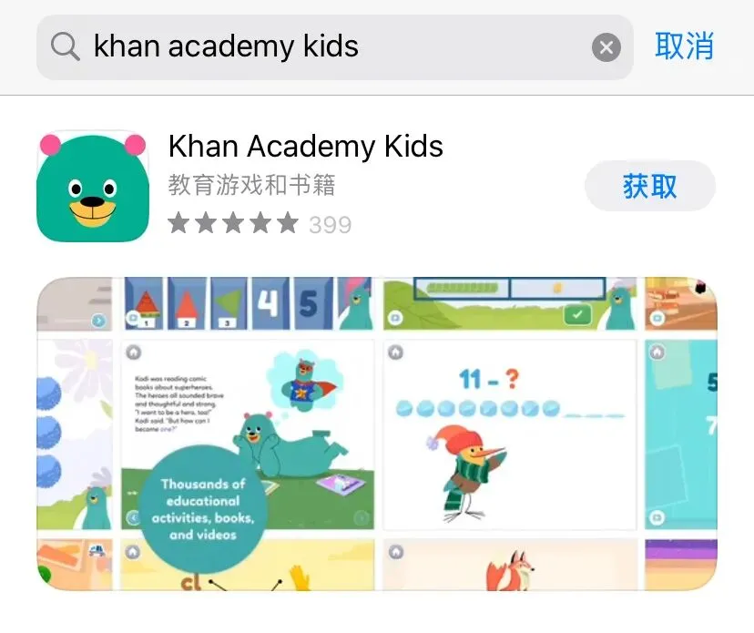 苹果手机:在App中搜索“Khan Academy Kids”就可以直接下载。如果遇到问题,建议升级到最新的iOS。