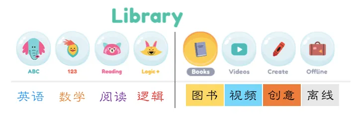 如果说第一种的主题场景模式适合孩子们自学,那么APP给出的第二种图书馆分类资源模式,因为分类特别清楚,所以就特别适合孩子在家长和老师的带领下进行更有针对性的学习。同时也有助于老师们在备课时,快速找到准确的资源。