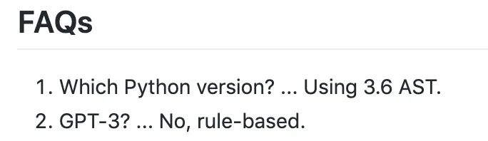 运行这个项目,使用 Python3.6 版本即可。它的算法原理也非常简单,不需要什么强大神经网络,如 GPT-3 等,你只需要掌握简单的正则表达式就能搞定。