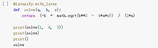 这款工具不依赖强大的工具包,只需要几个简单的模块:math 模块以及 latexify 模块。编写简单的函数: