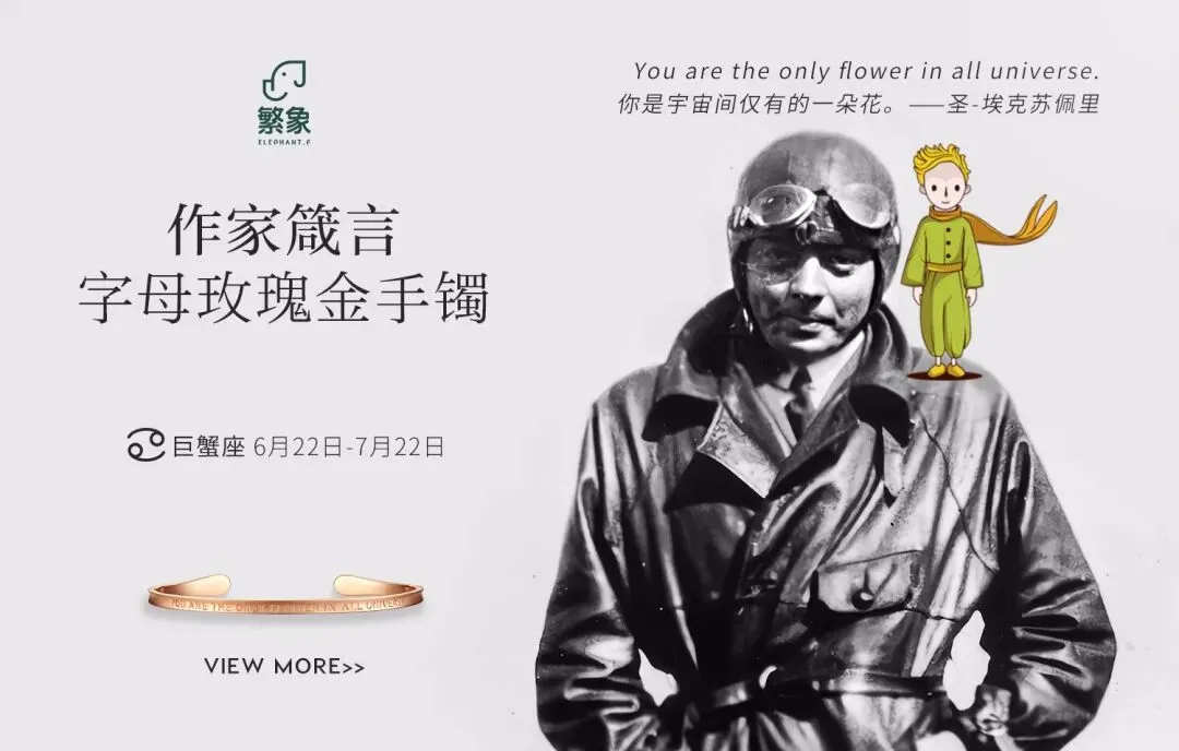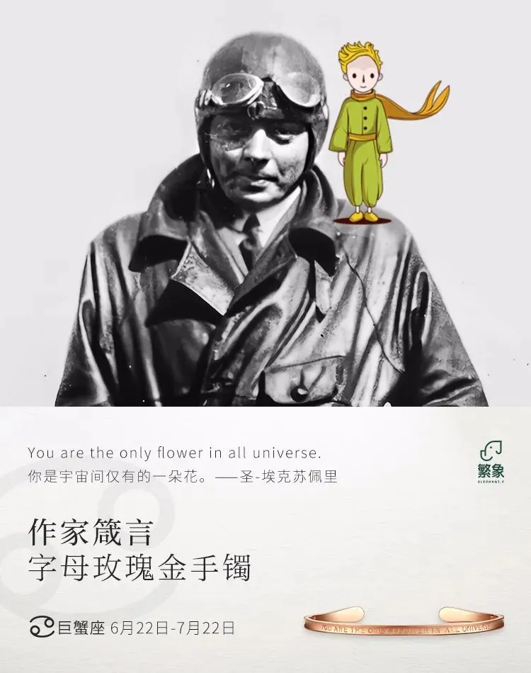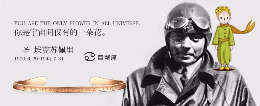 以《小王子》为灵感, 新周刊推出了【圣·埃克苏佩里作家箴言简约字母玫瑰金手镯】 ,希望在这个星球上,我们都能遇到自己所爱的独一无二的玫瑰花。