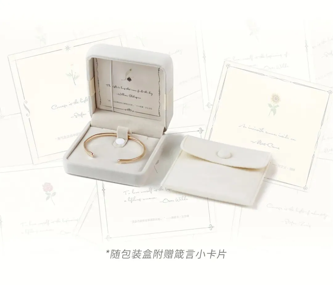 圣·埃克苏佩里的名言“ You are the only flower in all universe. ”镌刻在手镯正面,具有文学收藏价值,戴在腕间彰显品味,提升整体的气质。