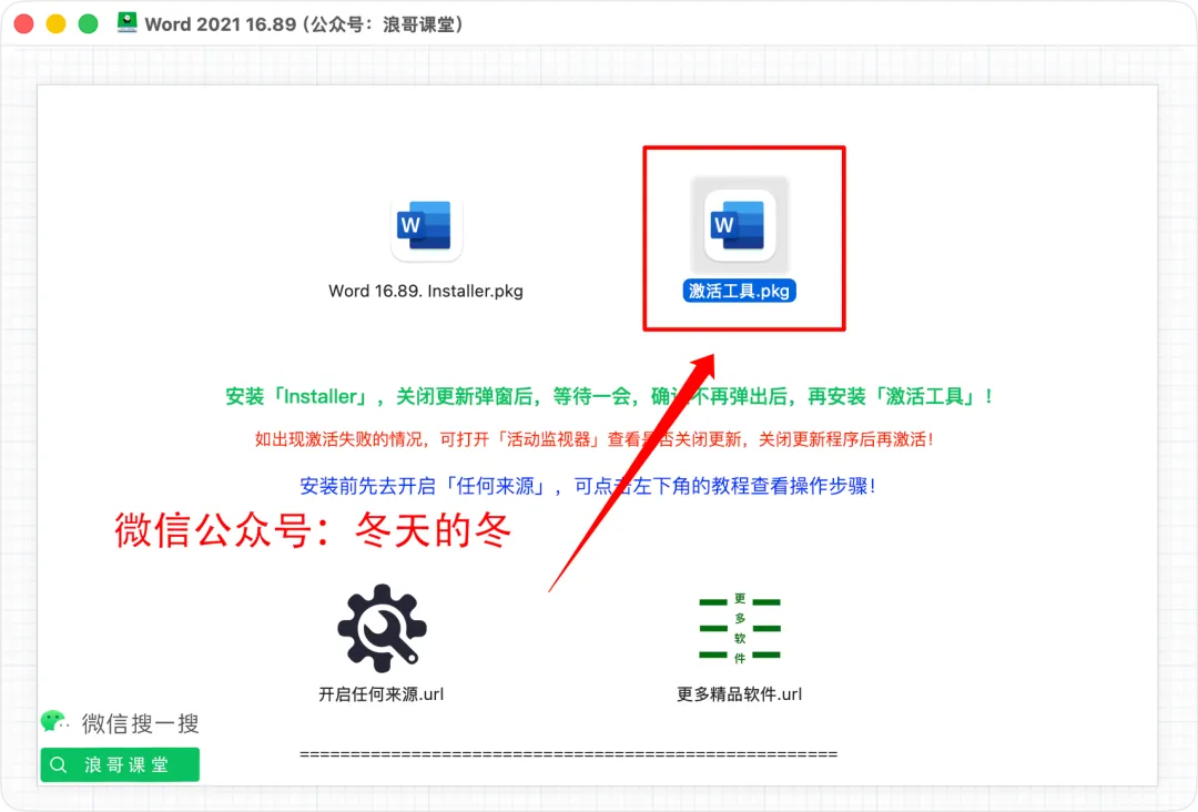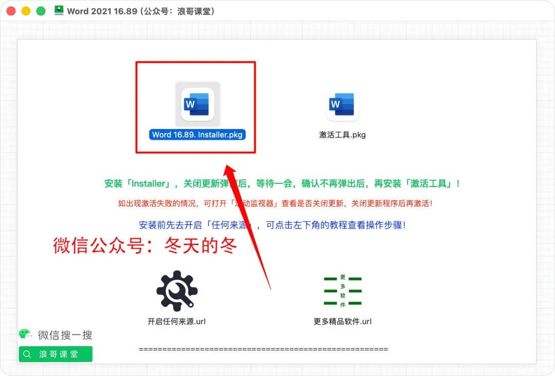 4、打开软件安装包后,双击安装【word 16.89 installer.pkg】;