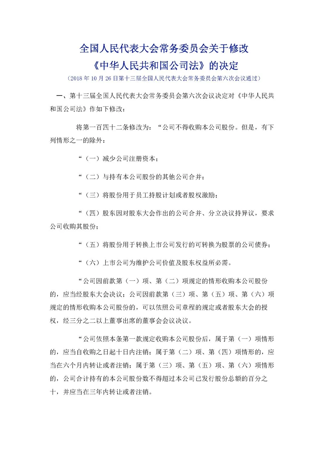 1、全国人民代表大会常务委员会关于修改《中华人民共和国公司法》的决定