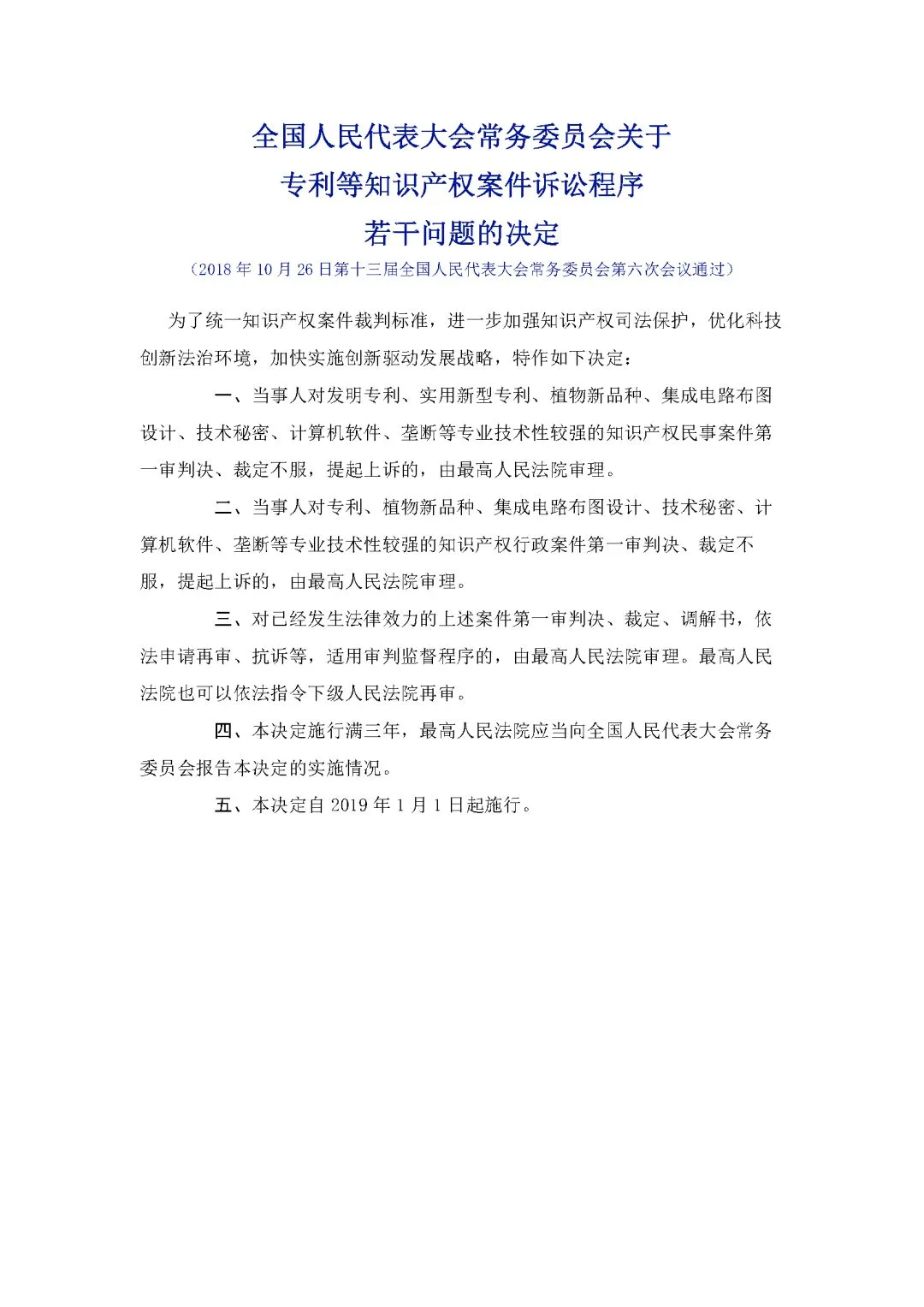 3、全国人民代表大会常务委员会关于专利等知识产权案件诉讼程序若干问题的决定