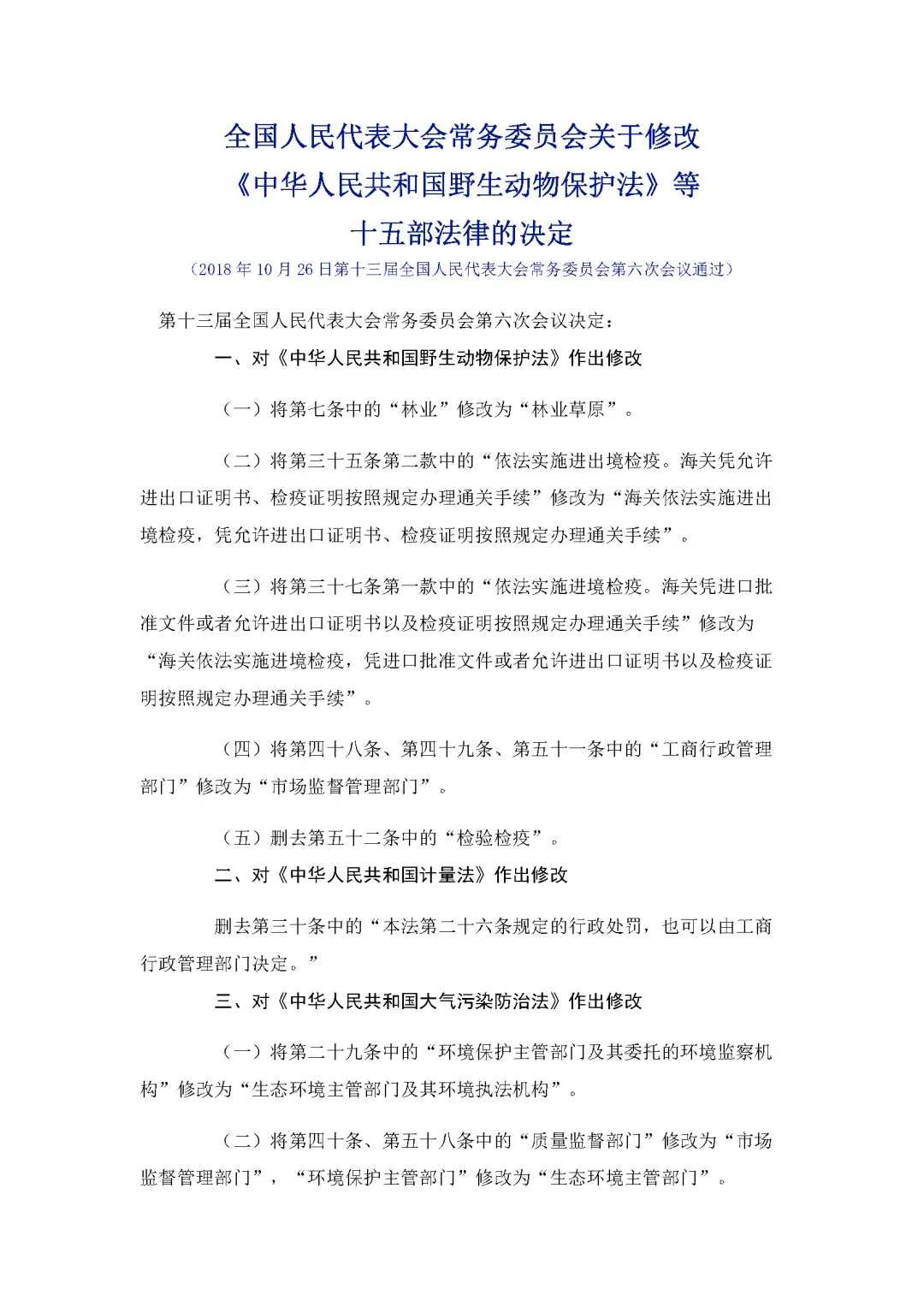 4、全国人民代表大会常务委员会关于修改《中华人民共和国野生动物保护法》等5十五部法律的决定