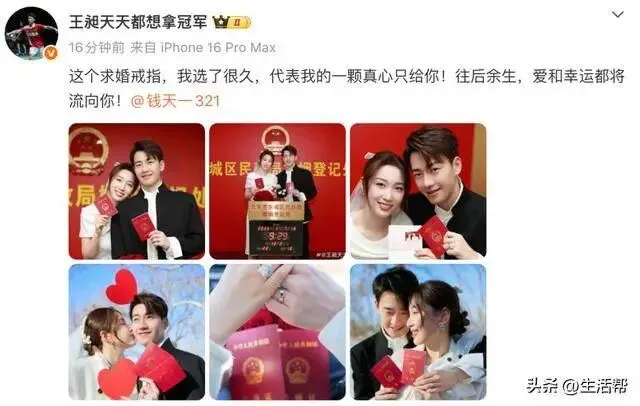 钱天一发文:生日愿望是嫁给你,睁眼就实现了。