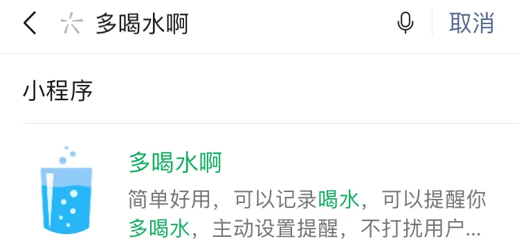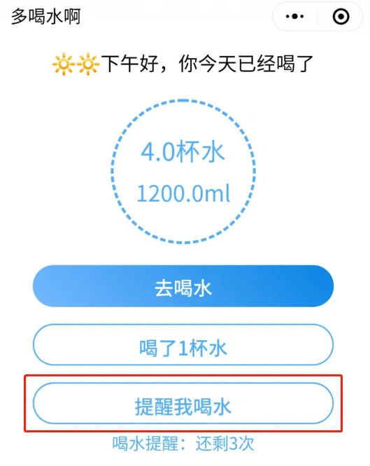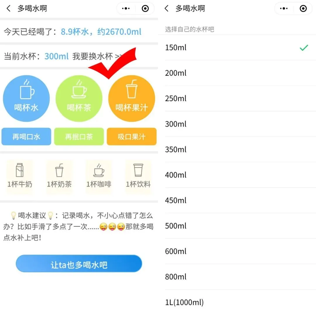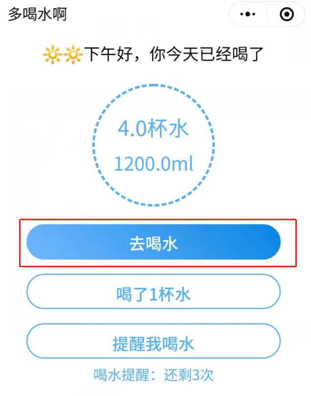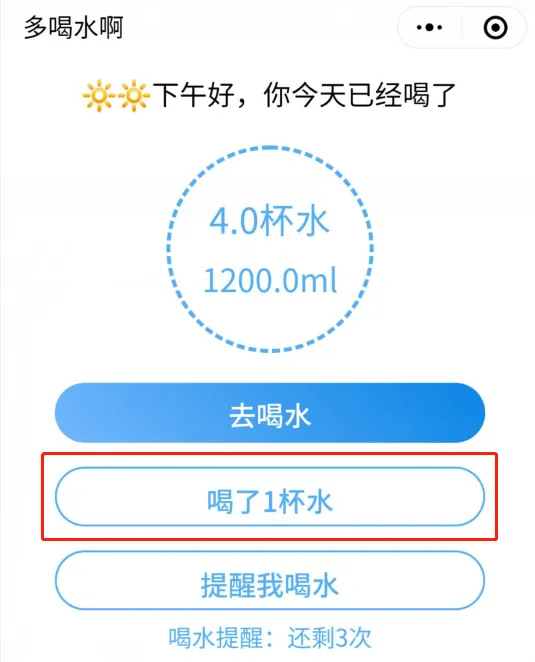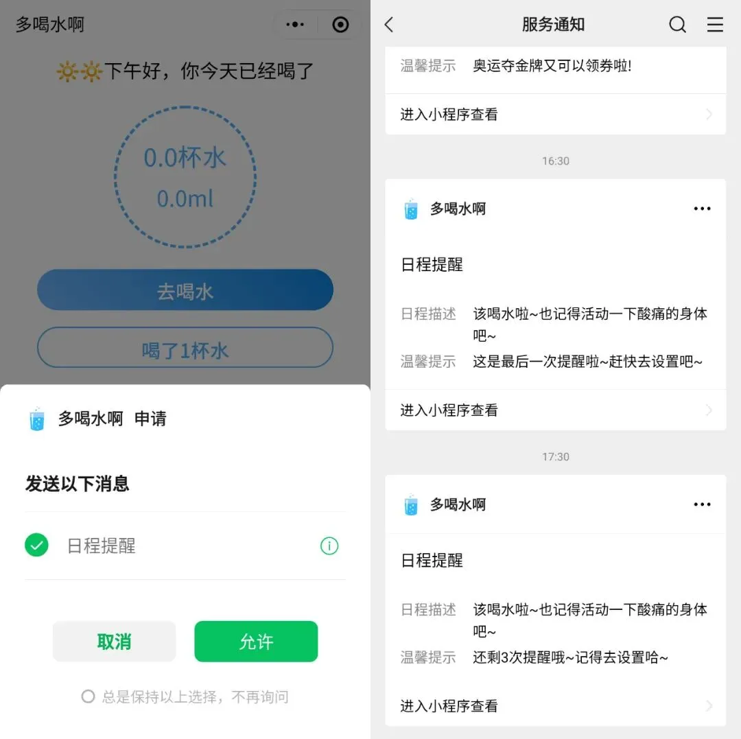 就拿喝水提醒来说,有个小程序叫「多喝水啊」,名字同样简单粗暴,就是用来提醒,别忘记喝水的。