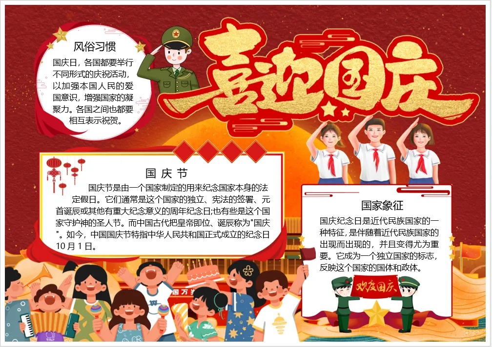 国庆秋节,我们为大家整理了关于国庆节的手抄报资源,最重要的是,我们提供的手抄报是word版本,简单替换一下标题,你就DIY成功啦~