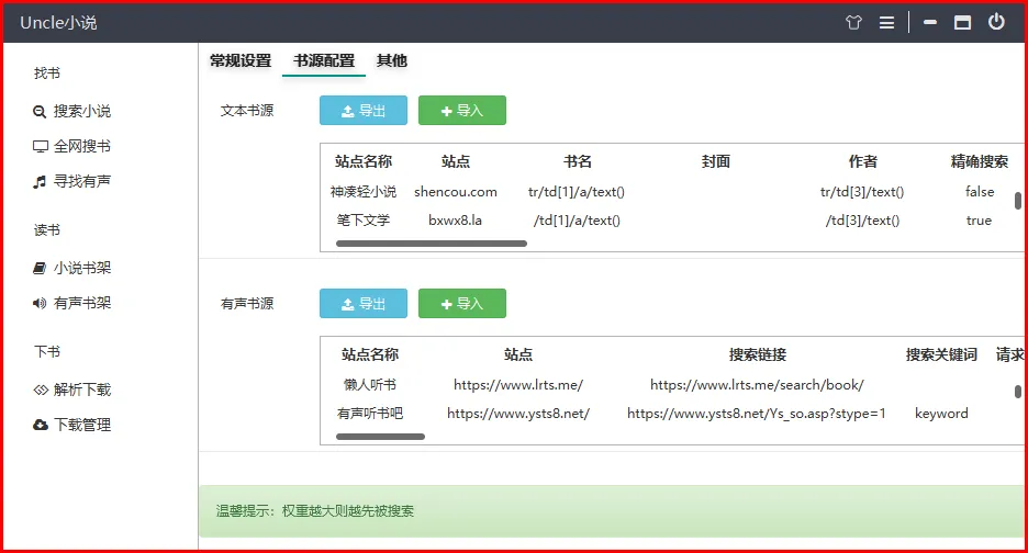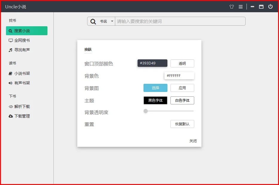 Uncle是来自吾爱论坛的一款可以在线阅读、收听以及下载全网小说的免费工具,界面美观,功能强大,被网友称为目前网上体验最棒的小说下载神器。