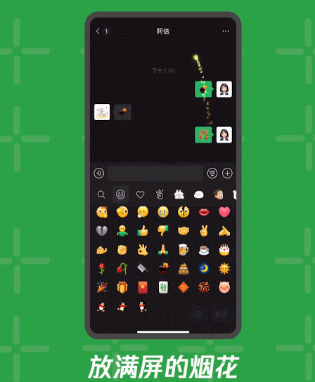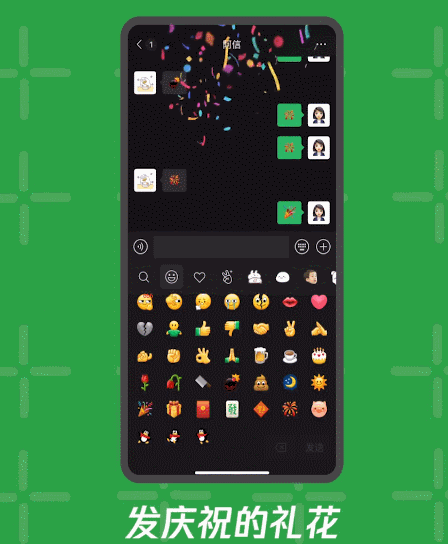 ○ 自带表情调整:全新的表情,还有彩蛋:发送烟花、炸弹、礼花的时候会有动效!