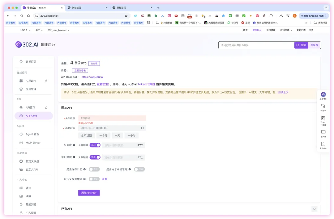 拖到网站里的时候会让你填key,我这里用的是302ai,