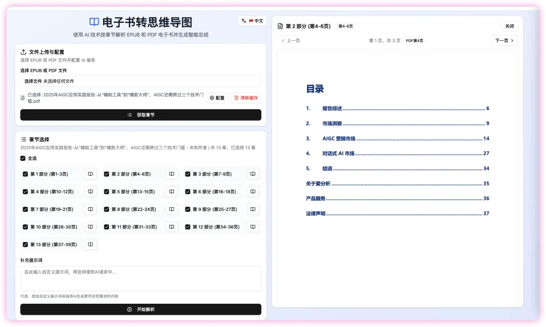 PDF/epub电子书转思维导图,AI帮你10分钟搞定全书精华