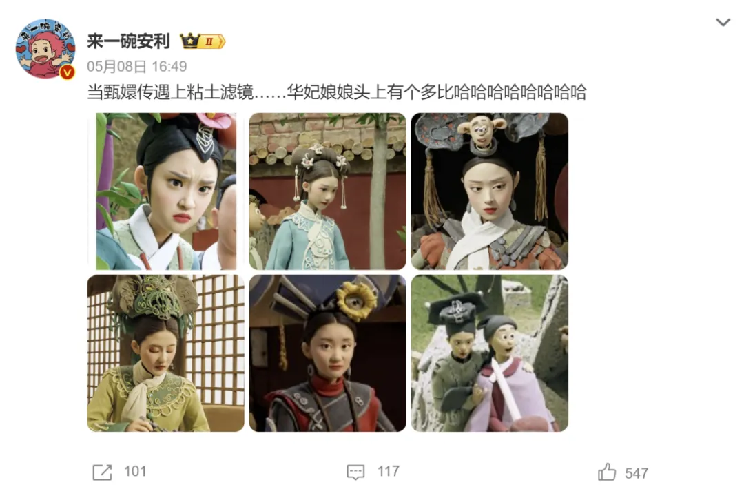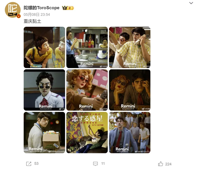 与传统的滤镜相比,经过AI处理的黏土滤镜,其生成照片的黏土风格显然更加生动、真实,配合网友各种有趣的表演和脑洞,总能让人忍俊不禁。