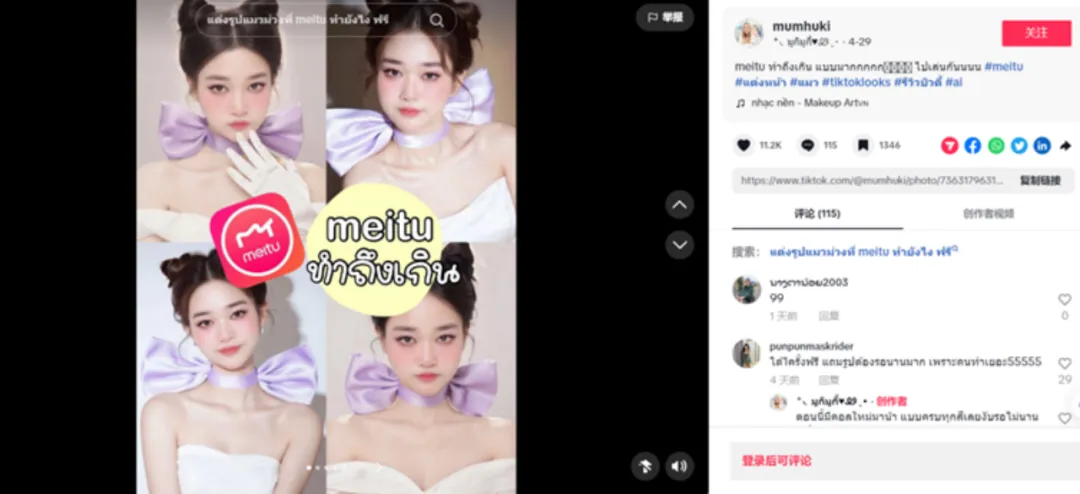 此前美图秀秀推出的一款“汤姆的梦中情猫”AI写真在泰国成为网络人气爆款,单个作品的游览量超过500万