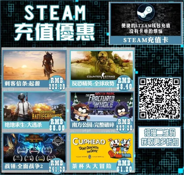 圣诞狂欢已经开始!还在为卡单的问题而烦恼吗?方便快捷实惠的Steam充值卡供你使用!