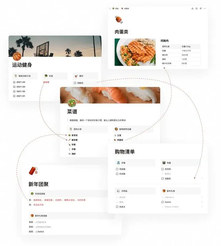 引用和嵌入一旦发生,信息之间就会产生关联,产生关联的信息之间支持来回跳转。每一个信息都在不同的关联关系里充当不一样的角色。