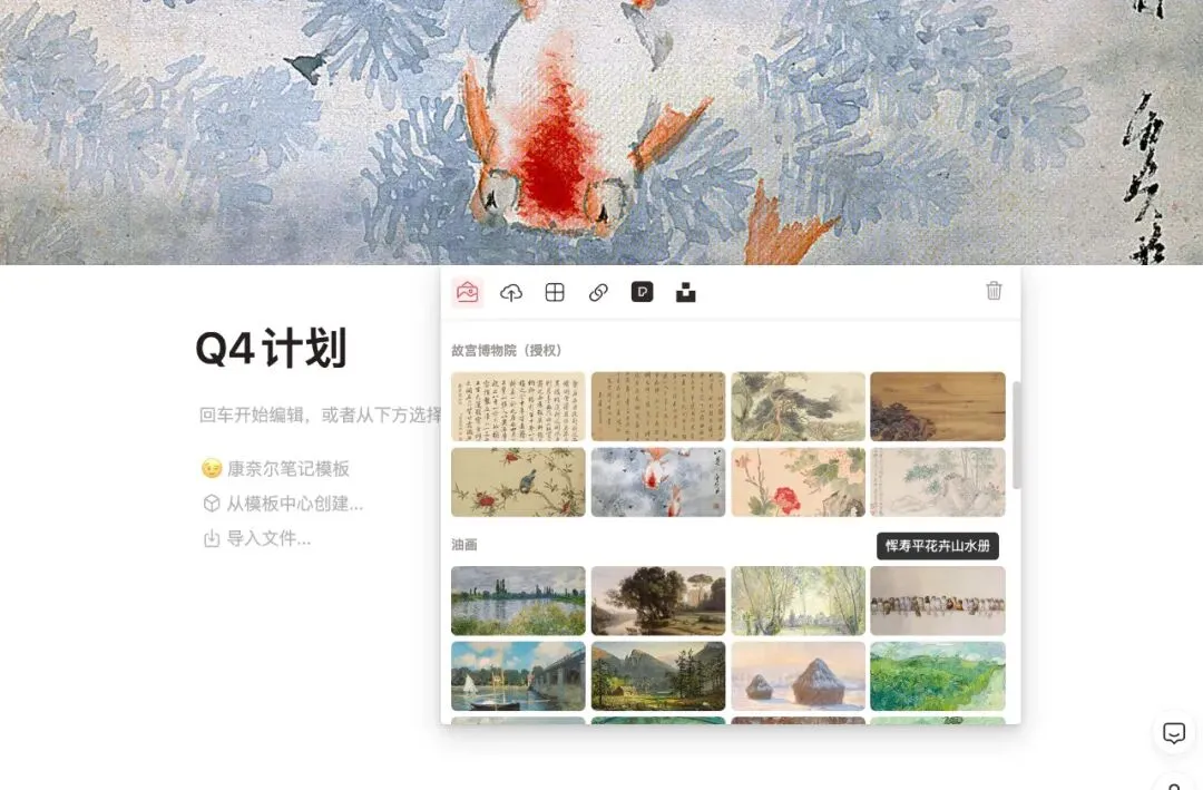 5、百款模板+上千个图标+免费图库+故宫博物院授权图片,轻松搭建高颜值笔记