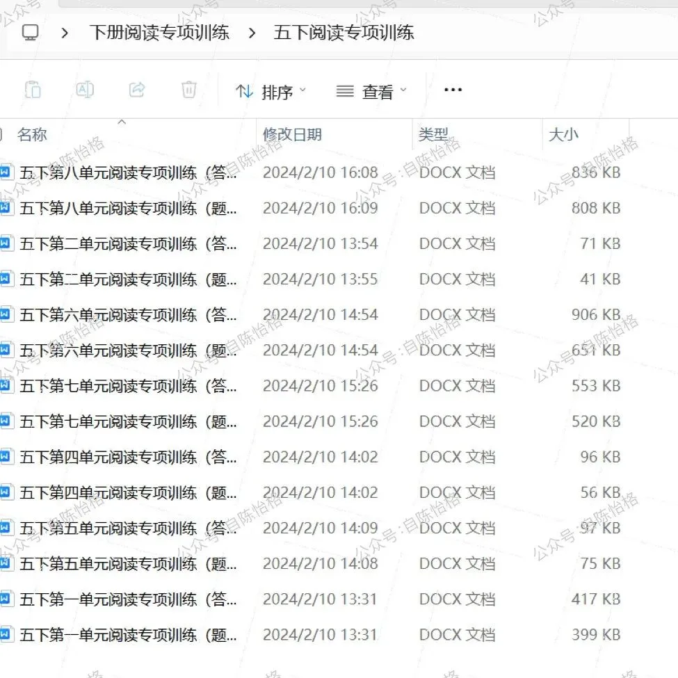 五下1~8单元阅读专项训练齐了!(只做了文档,没有视频)