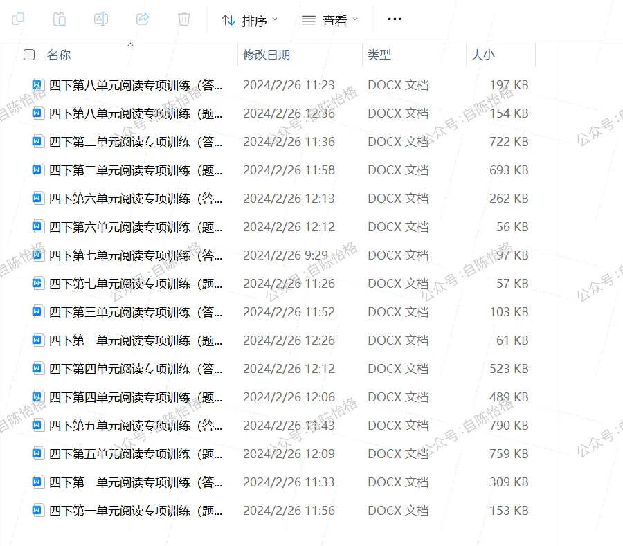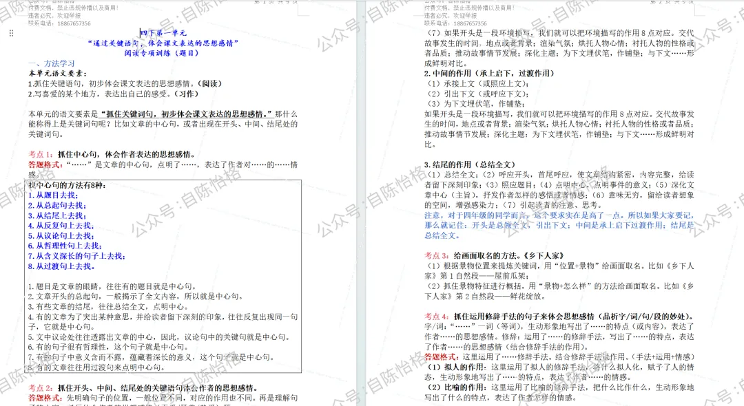 四1~8单元阅读专项训练齐了!(只做了文档,没有视频)
