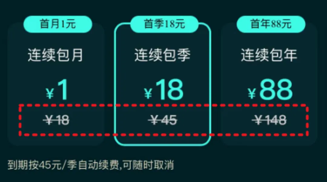 而再去看App上的会员收费:¥18/月,¥45/季,¥148/年。