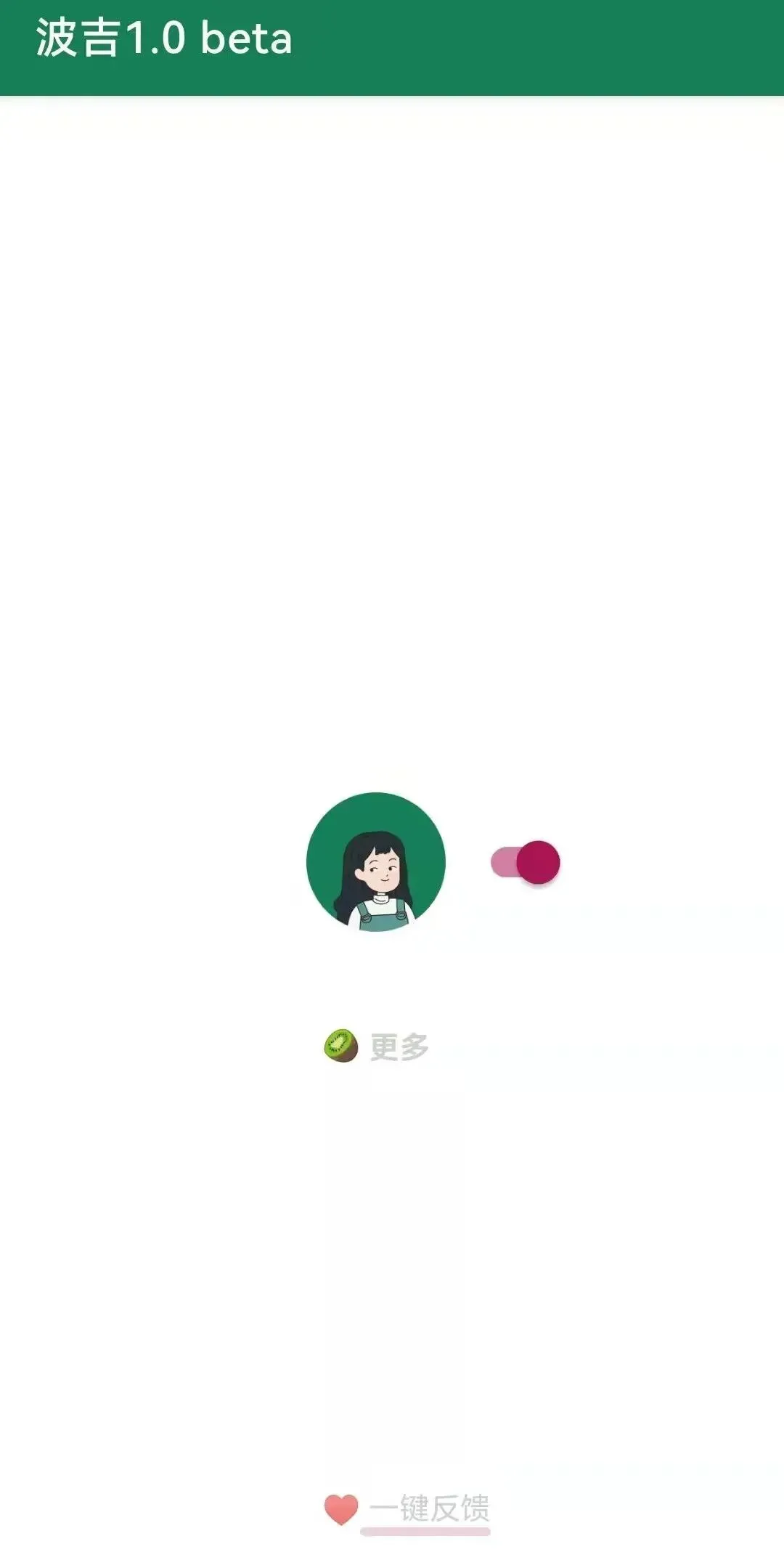 软件界面超级精简,除了页面最下方的「一键反馈」,只有功能「开关选项」和「更多」两个按钮。