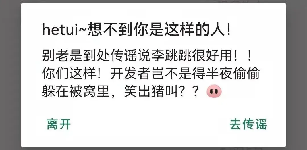 点击「祸害他人」,弹出下面这个窗口,如果你用得不错,愿意分享扩散,可以「去传谣」。