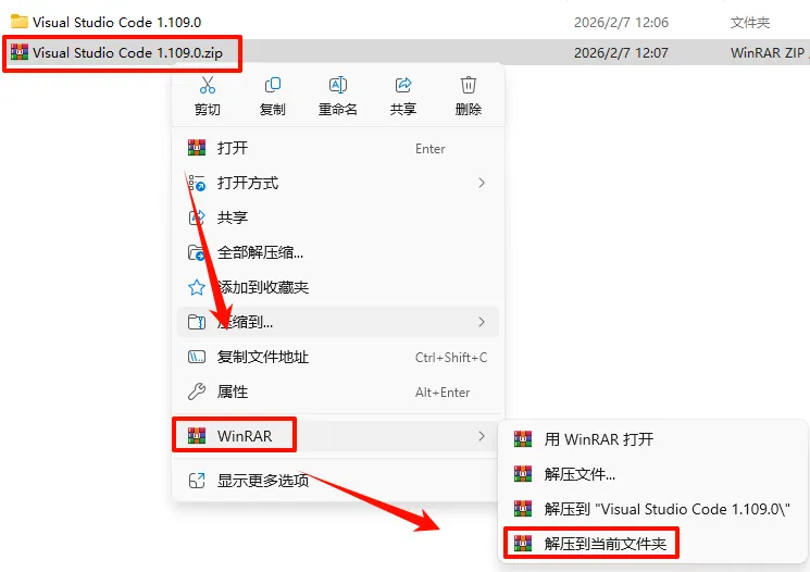 1.选中下载的压缩包,然后鼠标右键选择“解压到当前文件夹”(没有解压选项点这里)