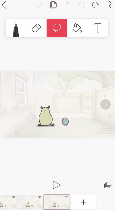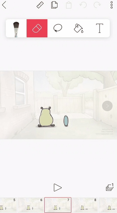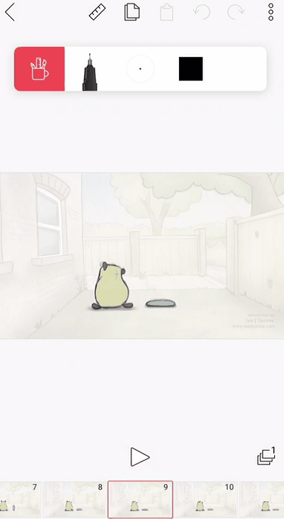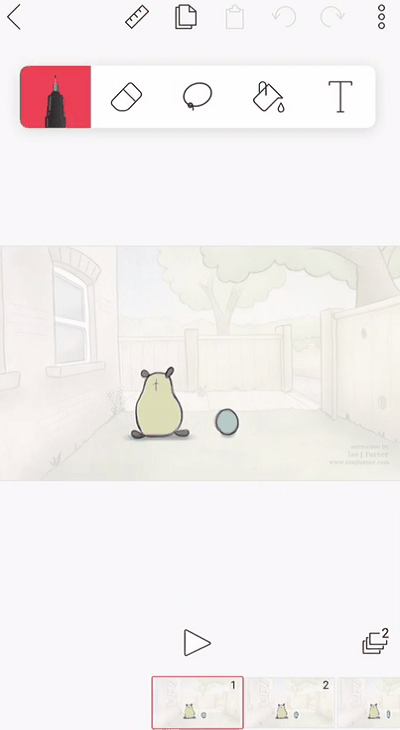 「FlipaClip」是利用逐帧编辑图案并连续播放实现动画制作,原理与狂丸之前介绍的「定格动画工作室」类似,但是操作方式与风格完全不同,「FlipaClip」只能在动画背景上手绘图案,然后连续播放制成动画,但这也更助于发挥脑洞。