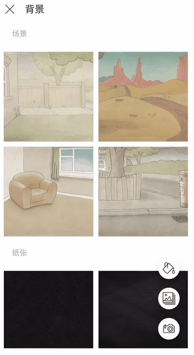 也可以直接拍摄或从设备相册中调取照片用作背景、或者使用右下角的「颜料罐」功能,制作纯色背景使用。