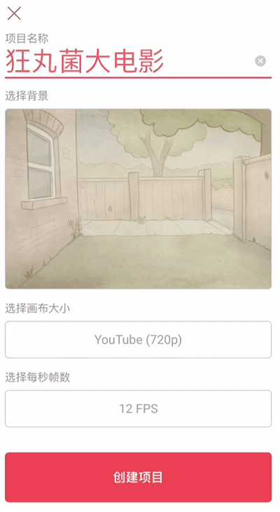 软件界面清新简洁,所有功能一目了然,首先点击「+」创建一个新的「动画项目」,然后是命名、选择动画背景,可以直接选择软件内置的背景,有温暖治愈的动画场景,和不同样式的「纸张」和「图案」背景可以选择。