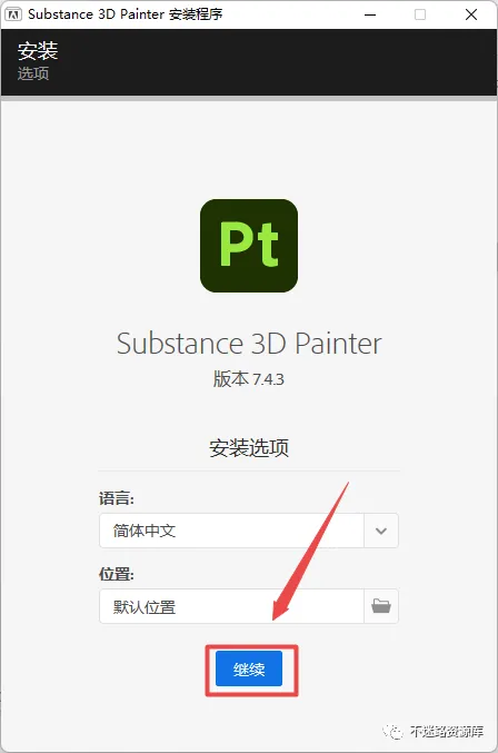 4.可以选择软件安装路径,建议和教程中的保持一致,本例默认安装(可以在其它磁盘里创建一个新的文件夹,安装路径不要出现中文),点击“继续”