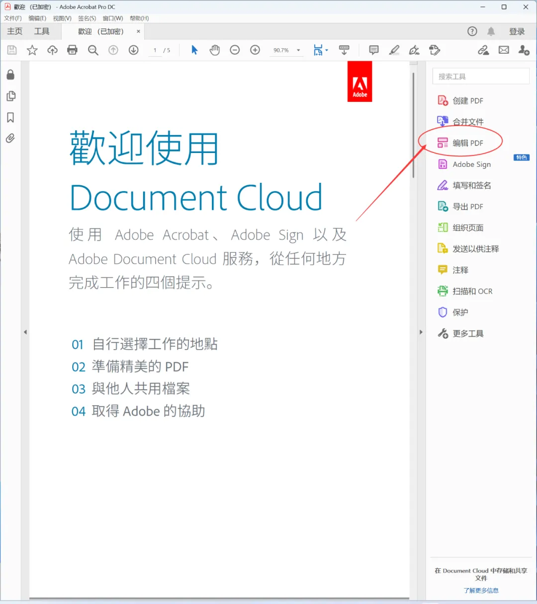 打开文档后,默认界面右边工具栏可见编辑选项,点击后可识别文字后进行编辑操作。