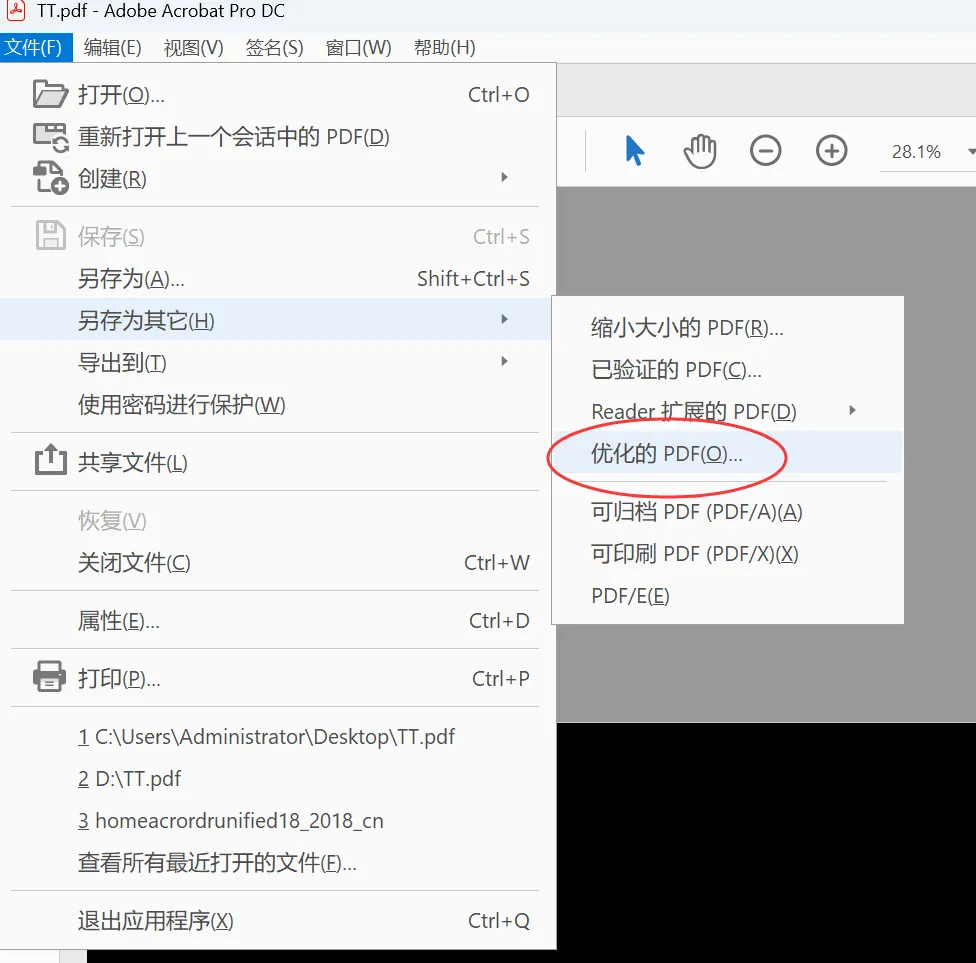 另存为其它→优化的PDF