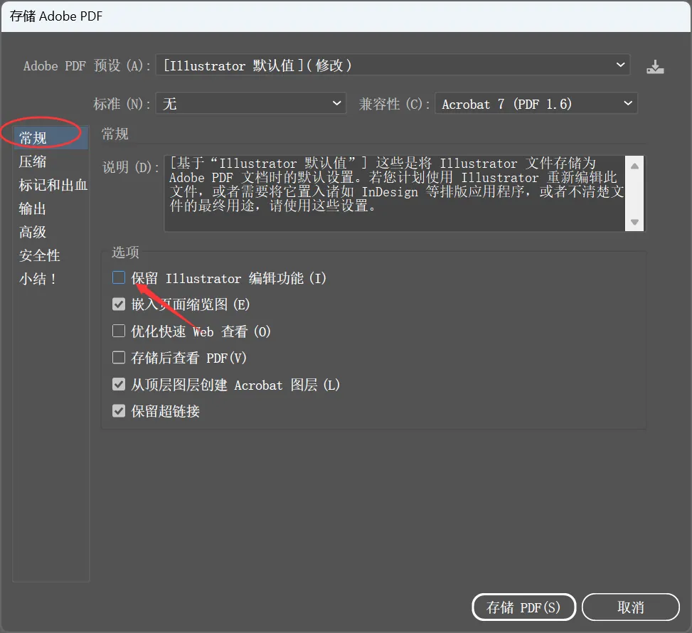 ②去掉“保留Illustrator编辑功能,文件可以小一点点
