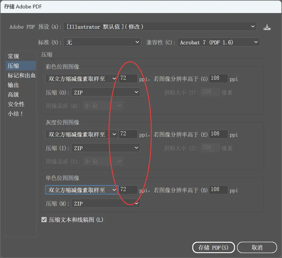 ③在压缩的地方,和上面的Acrobat操作一样了,