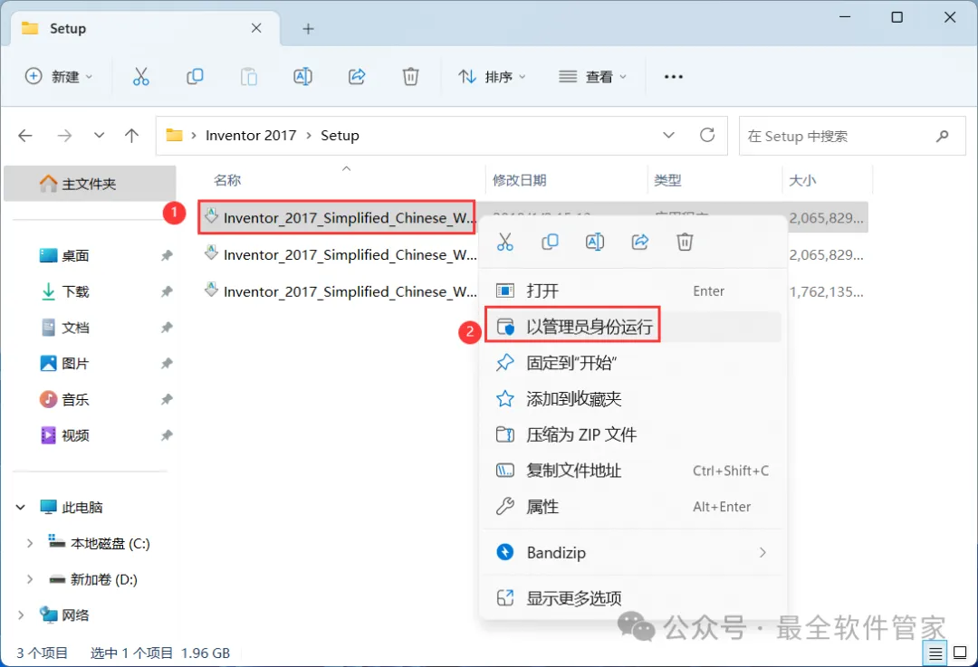 4、找到【Inventor_2017…】应用程序,右键选择【以管理员身份运行】它