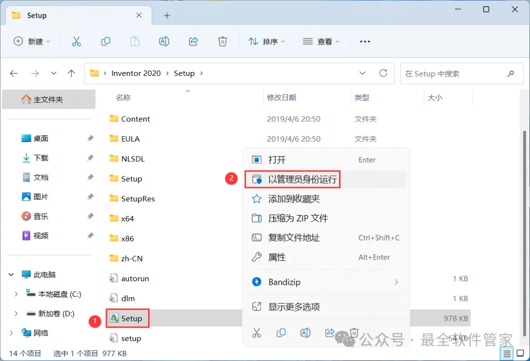 4、找到【Setup】应用程序,右键选择【以管理员身份运行】它